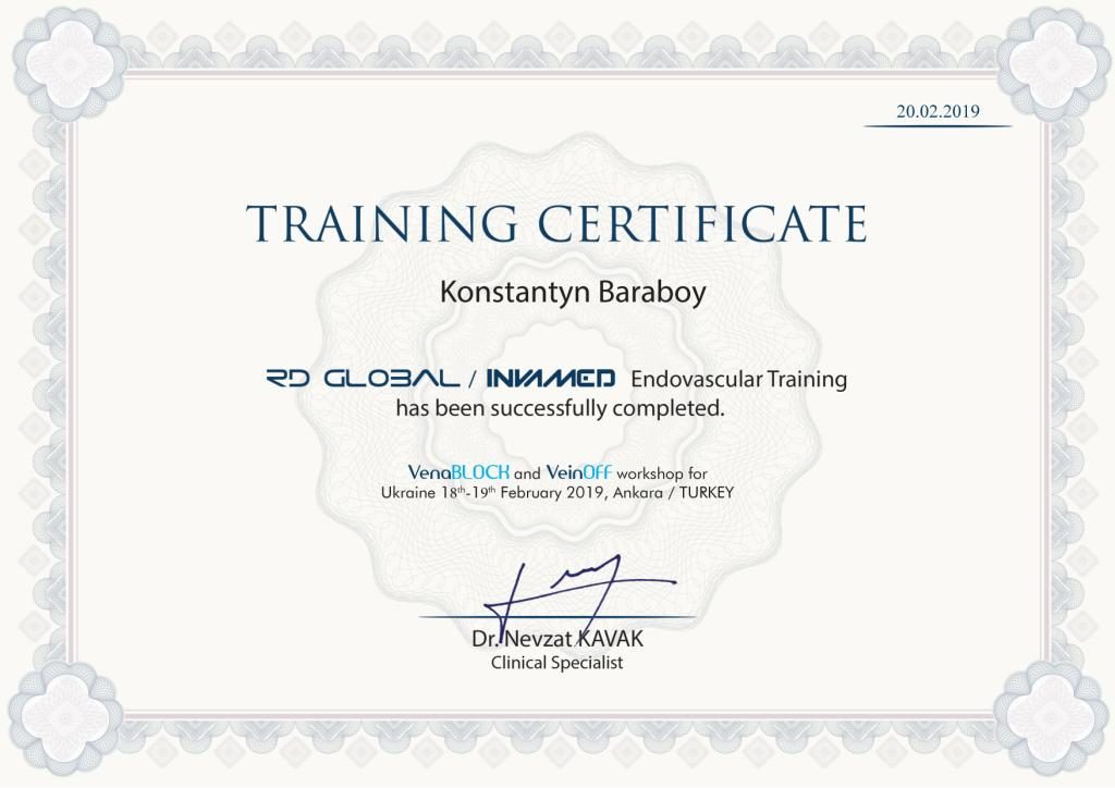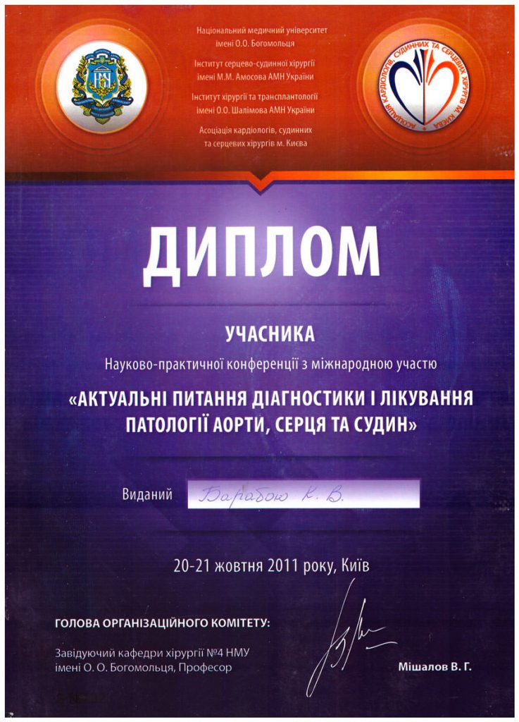 Лікар володіє сучасними методиками діагностики та лікування патологій судин і вен. Активно використовує в роботі лазер для лікування варикозної хвороби.